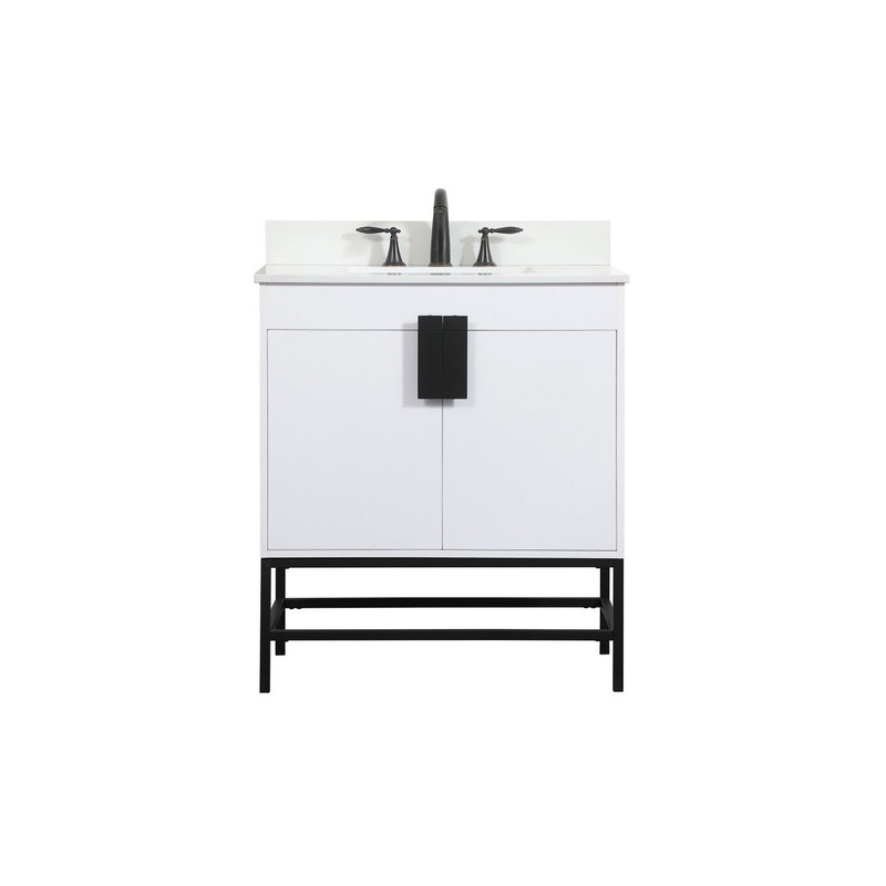 Specifications for this Elegant Lighting Single Bathroom VanityThis vanity is a sleek-looking piece of bathroom furniture that is easy to incorporate into your design scheme. The cabinet features a smooth door panel with an oversized steel handle and soft