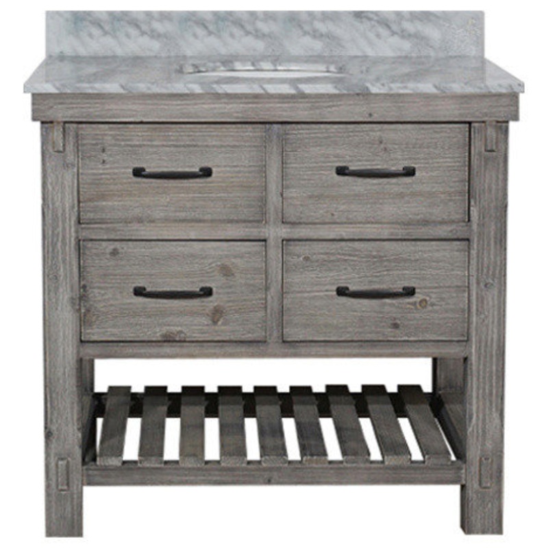 Introduce some old-fashioned charm to your bathroom withThis single-sink vanity. The base is made of recycled fir with a fashionably Grey-Driftwood finish for a quaint look, and the marble topAdds a touch of sophistication. One tip-out drawer, one spacious pull-out drawer, and an exposed shelf let youOrganize all your essentials