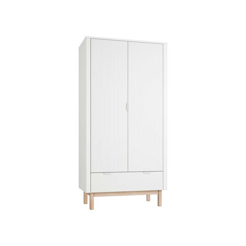 Elegantajam divdurvju skapim no Foxy lnijas ir raksturga uzlabota sistmaklus aizvrana. Interjer ir trs plaukti un stienis aprbu pakarinanai.Garderobei nav iespjams iegdties papildu plauktus.Skapim ir ietilpga atvilktne, kas aprkota ar augstas kvalittes vad