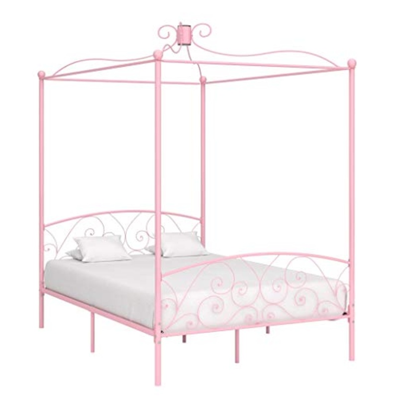 SKM Letto a Baldacchino Rosa in Metallo 120×200 cm