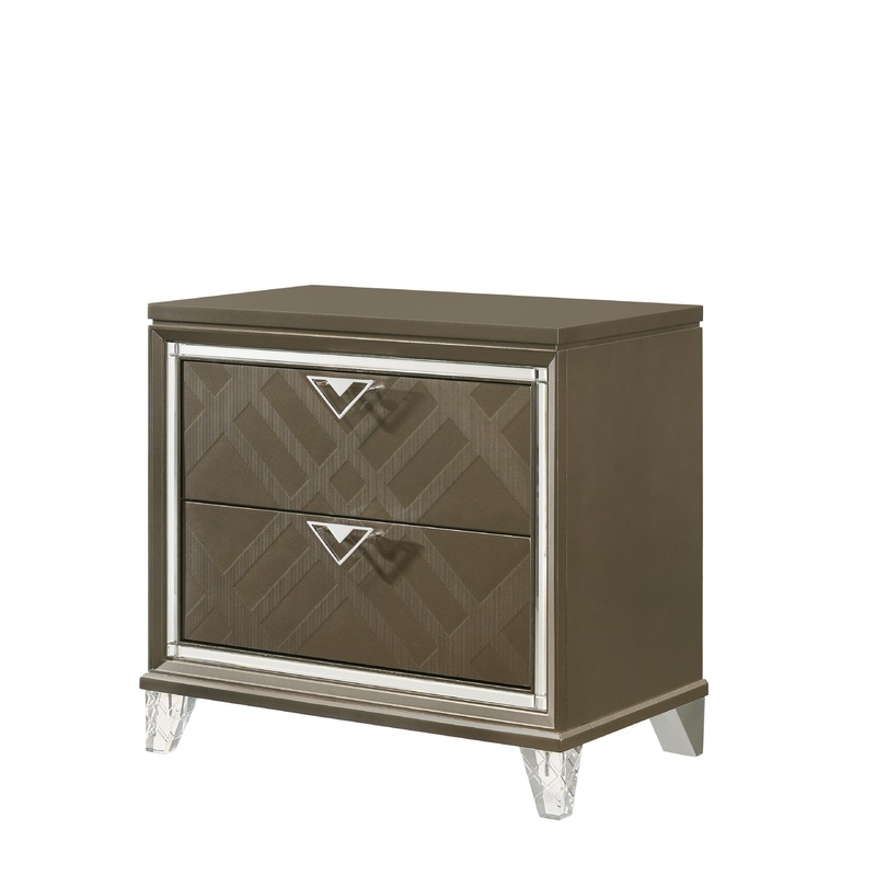ACME Skylar Nightstand, Dark Champagne, 31″ x 18″ x 29″H, 85Lbs. Materials: Wood, Acrylic Leg, Veneer, Composite Wood