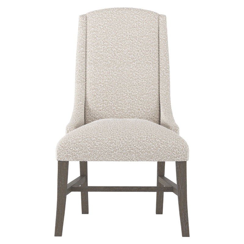 Upholstered seat with welt.Upholstered inback and outback.Stretchers.The fully upholstered, gently curved back and seat of the Slope side chair are perfect complements to the elegantly tapered wood legs and stretchers. Available in any of three smooth fini
