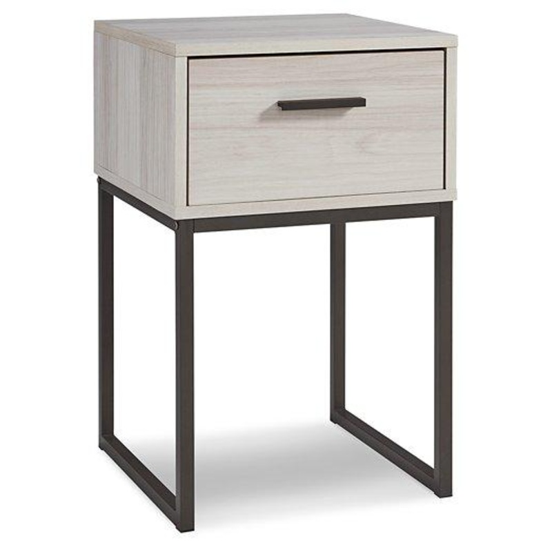 Light and bright, this nightstand is inspired by chic design. A light natural finish over replicated oak grain offers an authentic touch to this so-cool piece. It beautifully blends the hues of natural living with the edginess of your modern lifestyle.