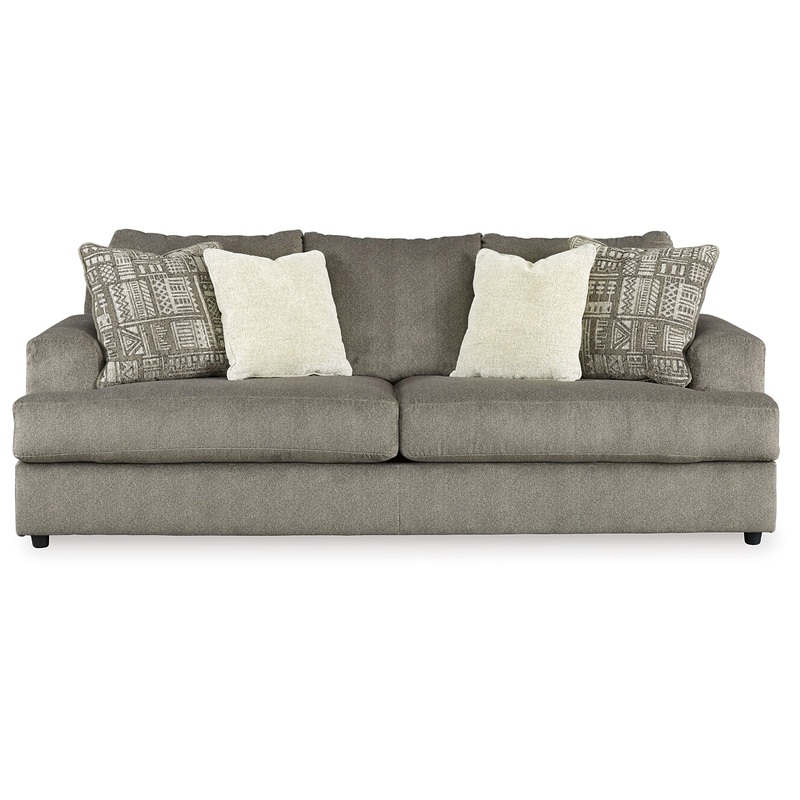 Flaunting a trendsetting silhouette, this sofa puts the contemporary in your contemporary home. Its three over two profile eliminates the center seat cushion, giving you elongated plushness and deep seating. And the microfiber fabric satisfies your need for a piece that feels as good as it looks. Soft jacquard chenille throw pillows add a splash of geometric pattern and color contrast.