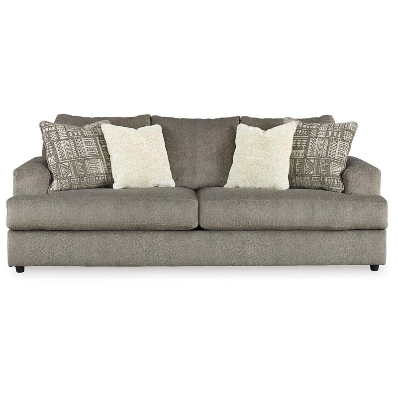 Flaunting a trendsetting silhouette, this sofa puts the contemporary in your contemporary home. Its three over two profile eliminates the center seat cushion, giving you elongated plushness and deep seating. Microfiber fabric satisfies your need for a piece that feels as good as it looks. Accented with soft jacquard chenille throw pillows for a splash of geometric pattern and color contrast.
