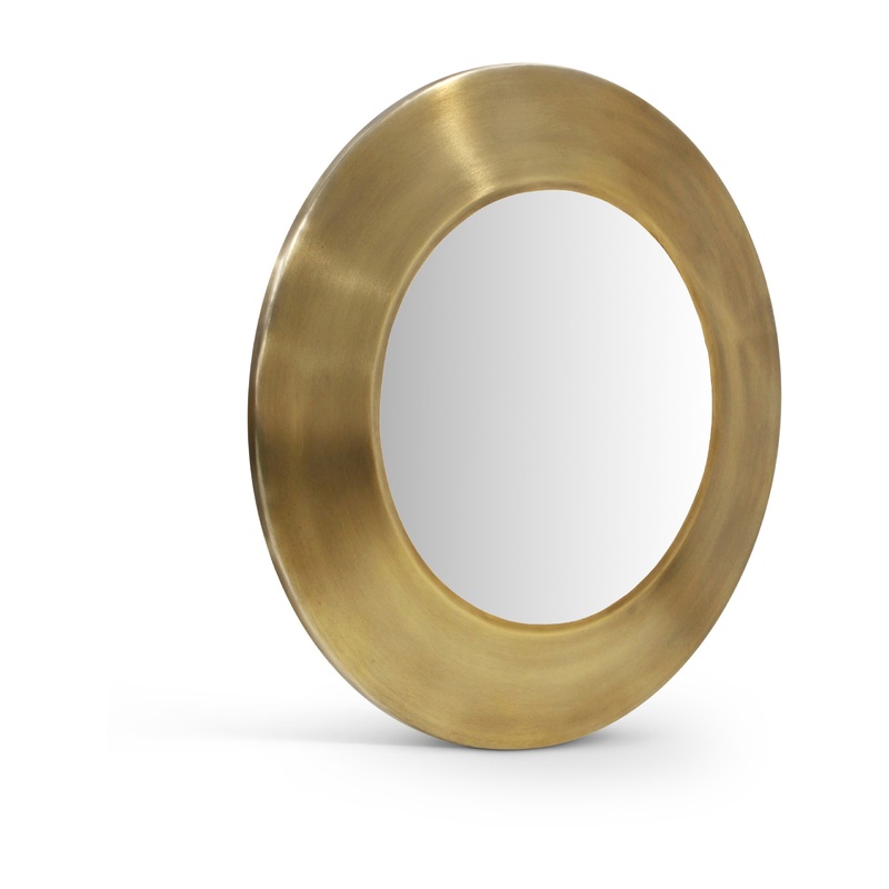 The Sphere gold iron mirror is the perfect blend of industrial chic and modern design. Its raw, rich antique gold iron frame and circular shape add a touch of edgy elegance to any room. A simple, yet striking design and durable frame make it a versatile an