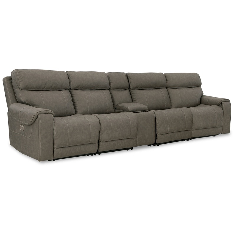 • Includes 5 pieces: left-arm facing power recliner, console with storage, 2 power armless recliners and right-arm facing power recliner