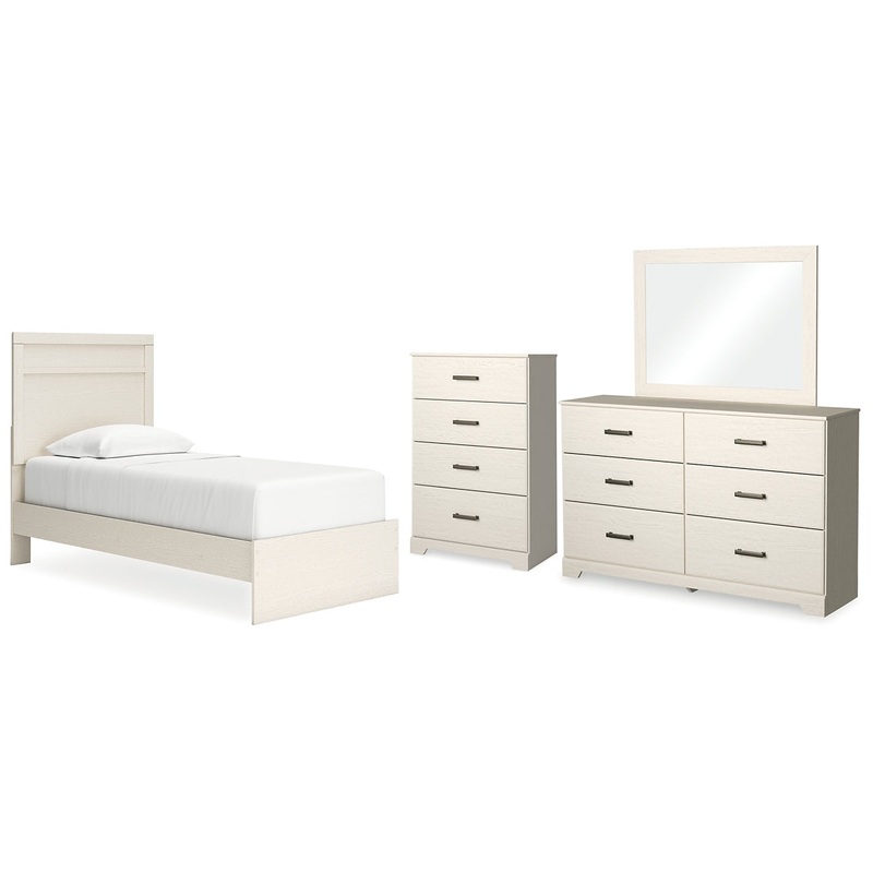 Stelsie Twin Panel Bed with Mirrored Dresser and Chest