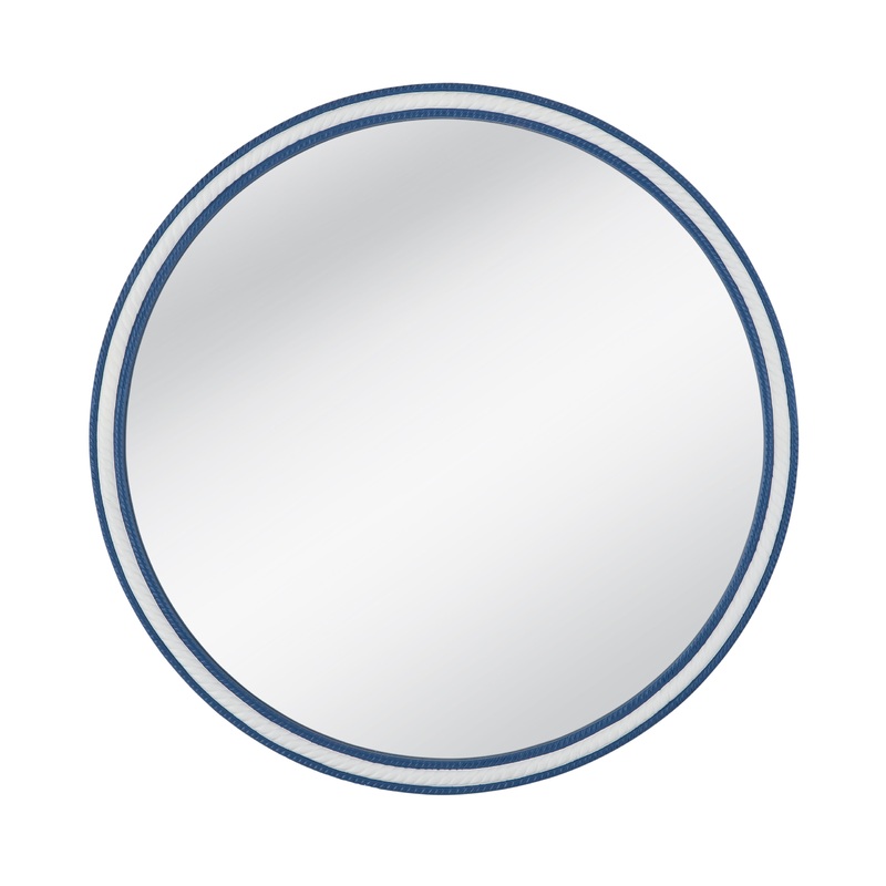 The Straits Wall Mirror boasts a round frame adorned with a charming rope motif, finished in a refreshing blend of bright blue and white resin. Its modern coastal design adds a touch of seaside charm to any space, creating a welcoming atmosphere with its c