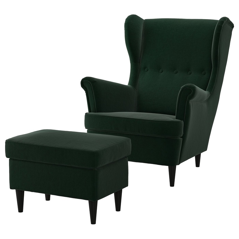 STRANDMON armchair and footstool, Tallmyra dark green
