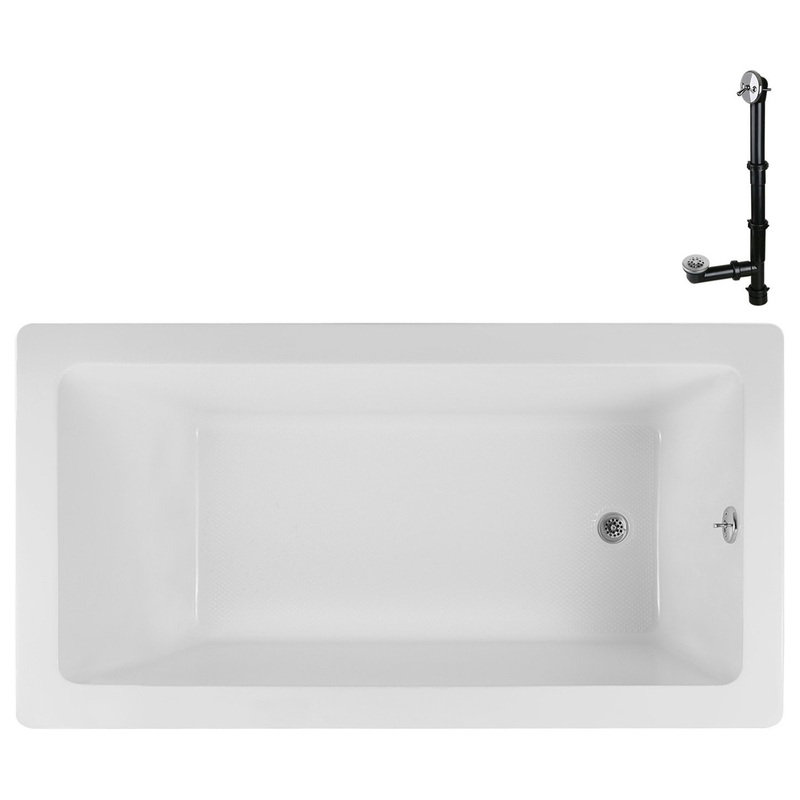 Introducing the exquisite Streamline N-4060-703-CH 60 in. x 32 in. Acrylic Soaking Drop-In Bathtub in Glossy White, With External Drain in Polished Chrome -a perfect harmony of luxury and practicality. Crafted from 100% pure acrylic, this bathtub showcases