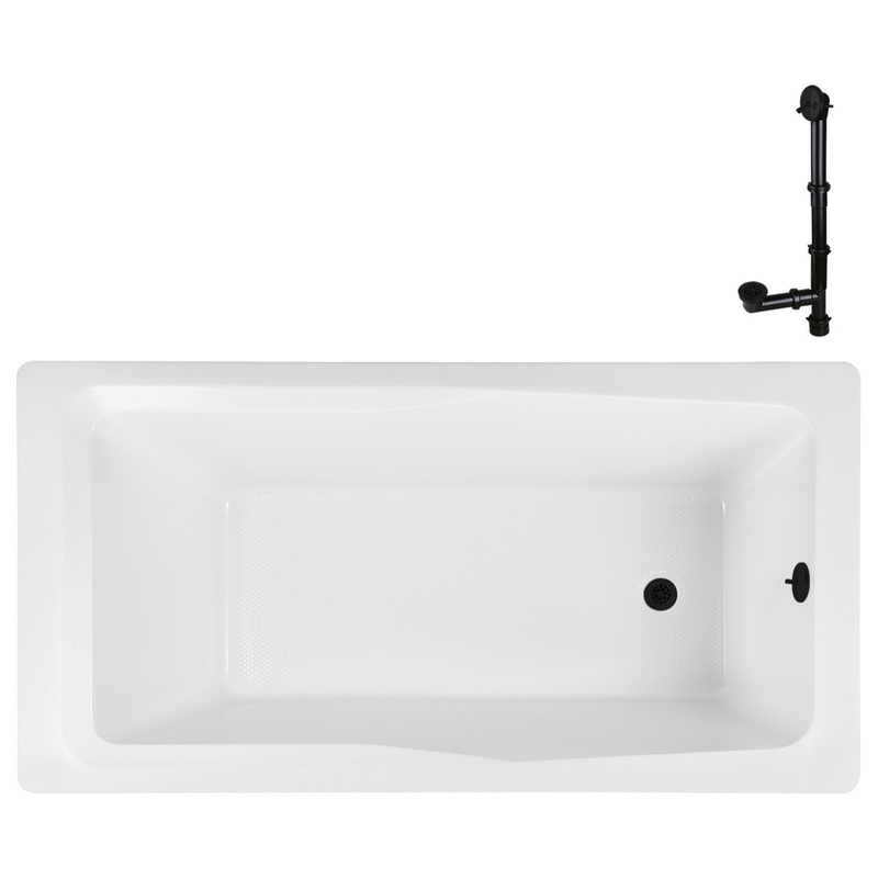 Experience the pinnacle of relaxation with the Streamline N-4440-763-BL 72 in. x 36 in. Acrylic Soaking Drop-In Bathtub in Glossy White, With External Drain in Matte Black. With its grand dimensions of 72 inches, this bathtub creates a luxurious oasis with
