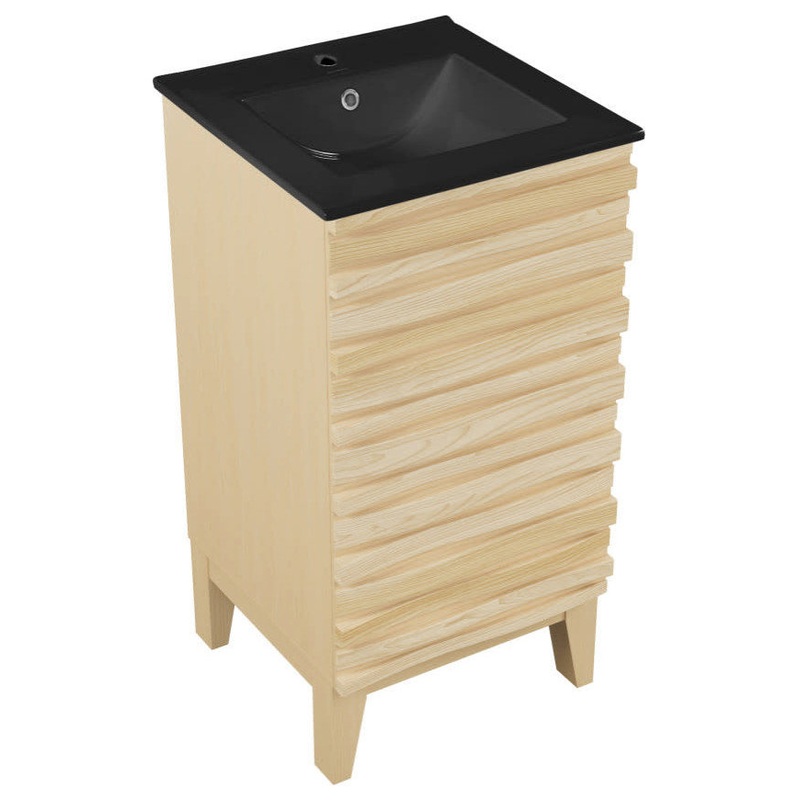 Immerse yourself in the gentle flow of design with the Cascade collection, where fluid lines and captivating forms create an atmosphere of tranquil beauty. Transform your bathroom into a sanctuary of style and functionality with our exquisite bathroom vanities, meticulously crafted to reflect your unique taste. Included Components: Covered under Swiss Madison’s 1 year limited warranty Engineered wood vanity cabinet with 1 door Ceramic vanity top with a single ceramic sink Faucet is not included and must be purchased separately Cabinet Features: Constructed from engineered wood providing a lifetime of durability Free standing installation – vanity is seated on the floor with wall anchors, providing a functional design Single door design provides easy access to storage space Soft close drawer slides operate on smooth ball-bearings and prevent drawers from slamming shut Vanity will need to be assembled Vanity Top Features: Ceramic vanity top includes a sink constructed of ceramic Single pre-drilled faucet hole Each sink features its own rectangular single basin workspace Center drain location provides optimal draining capability Equipped with an overflow drain to help prevent spillage Cabinet Specifications: Cabinet Width: 18-1/2″ (left to right) Cabinet Height: 35-1/2″ (top to bottom) Cabinet Depth: 18″ (front to back) Number of Doors: 1 Vanity Top Specifications: Vanity Top Depth: 18-1/2″ (front edge to back edge) Number of Basins: 1 Sink Dimensions: 7-1/2″H x 18-1/2″W x 18-1/2″L Sink Basin Dimensions: 13-3/8″ L x 13-3/8″ W x 5-1/2″ D Number of Faucet Holes: 1 Drain Outlet Connection: 1-3/4″