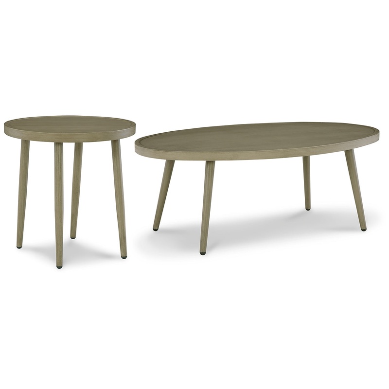Effortless in its beauty, this outdoor occasional table package echoes your easygoing sensibilities. Simply stunning in a brown wood-look finish over a sturdy aluminum frame, this set is an ideal companion for relaxing poolside or hosting friends alfresco.