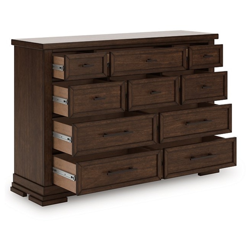 Style, simplicity and charm are hallmarks of this dresser. Created with casual spaces in mind, it has the versatility to suit styles from craftsman to modern farmhouse. The rich brown finish aligns with your refined-meets-relaxed approach to everyday style. And for a timeless touch, 10 drawers with picture frame detailing accommodate your storage needs.