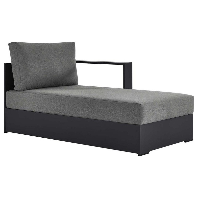 Enliven your alfresco spaces with the Tahoe Aluminum Outdoor Patio Right-Facing Chaise Lounge. This modern lounge chair is constructed with well-crafted, durable powder-coated aluminum, dispensing contemporary elegance in your outdoor lounge spaces. Its dense foam padding ensures sustained comfort, making it ideal for poolside lounging or as an outdoor patio sunbed, complete with a UV and water-resistant fabric-covered seat and backrest. The cushion covers are removable for easy machine washing. Part of a modular outdoor furniture collection, this right-facing sofa chair features a sturdy armrest on one side and an open end on the other, making it ideal for pairing with its matching sectional piece or versatile positioning with other outdoor furniture. The entire Tahoe aluminum patio furniture set features non-marking foot glides to protect your deck or patio floor and comes with easy-to-follow assembly instructions. Weight Capacity: 661 lbs.
