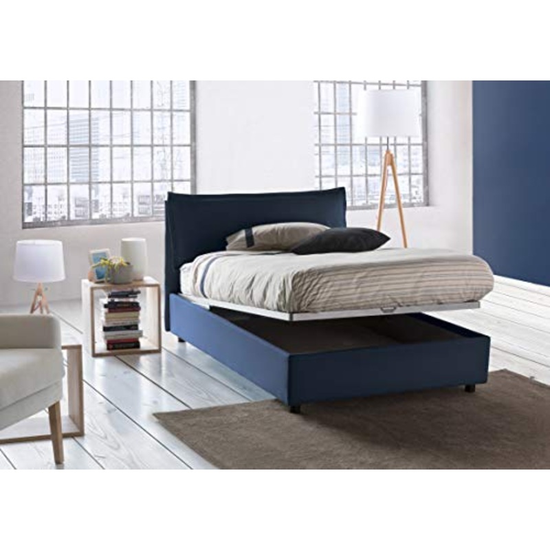 Talamo Italia Letto contenitore Una piazza e mezza Veronica, Made in Italy, Testata e rivestimento in tessuto, Apertura frontale, adatto per materasso cm 120×190, Blu