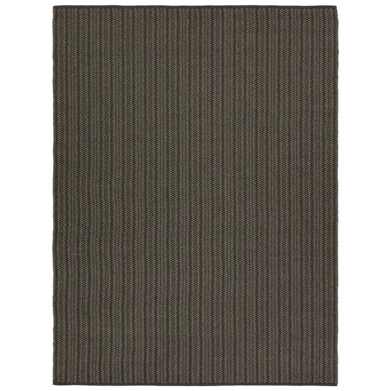 The Elmas rug from the Talin collection combines strength with modern style. Handwoven from thick, high-performance fibers, this indoor-outdoor rug features undulating stripes in neutral gray and charcoal tones. Built to handle everyday wear, it resists wa