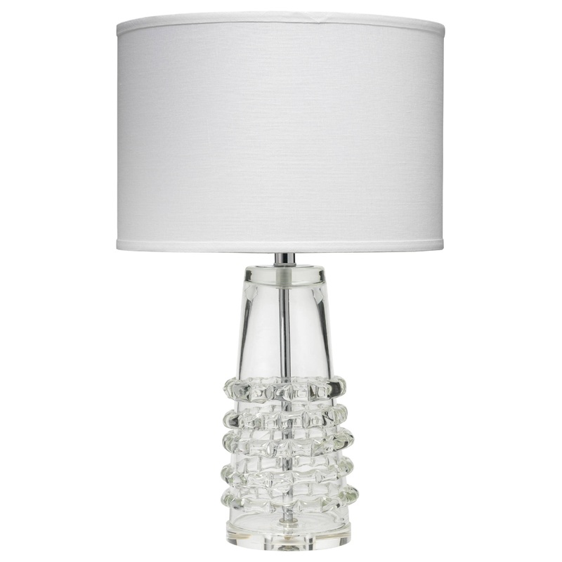 Experience the essence of organic-modern design with this mouth-blown glass table lamp. Featuring a unique ribbon pattern, the thick glass feels like crystal and seemingly floats in the room. Topped with a 100% linen shade, this accent lamp is an elegant c