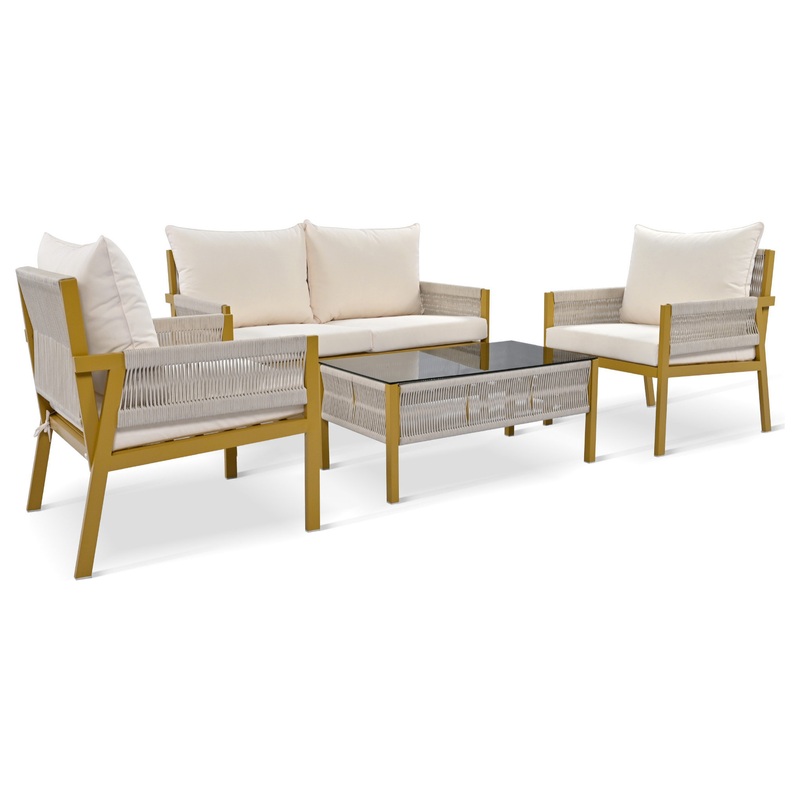 Our 4-piece boho patio furniture set is meticulously crafted from delicate PP rope, boasting a visually striking design and exceptional comfort. In comparison to conventional rattan materials, the thoughtfully engineered frame and rope are specifically designed to withstand even the harshest weather conditions.