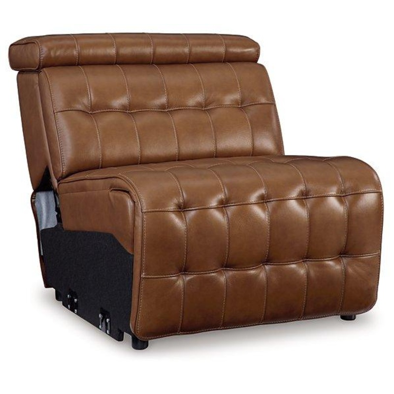 A mid-century modern update to a retro classic, this reclining sectional is generously adaptable. Its combination of skillfully matched leather and faux leather upholstery exudes luxury and elegance. Deep seat cushions with dramatic tufting beckon you to relax and unwind. Merging comfort with high-style design, this piece is in a league of its own.