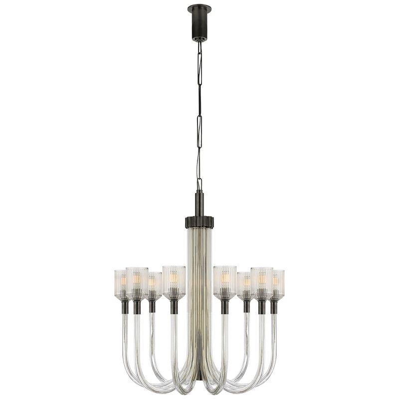 Ten Light Chandelier from the Reverie Collection in Clear Ribbed Glass And Bronze Finish by Visual Comfort Signature