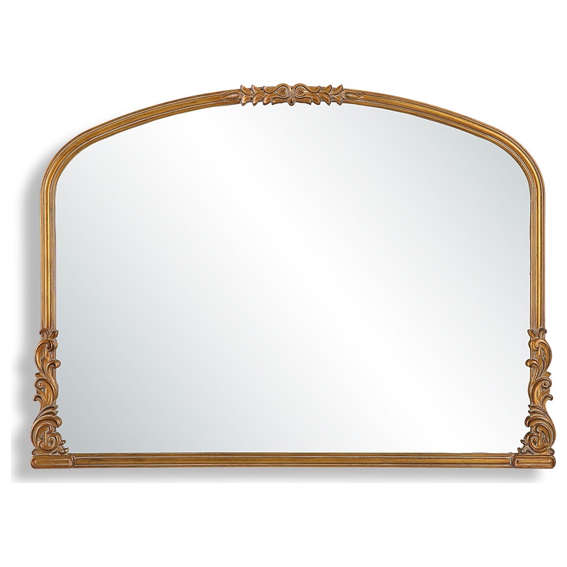 Perfect over a mantel, this Baroque style mirror features scroll embellishments at key focal points. This beautiful frame is finished in an antique gold that complements the ornate details. It is sure to be the center of attention at family gatherings. Als