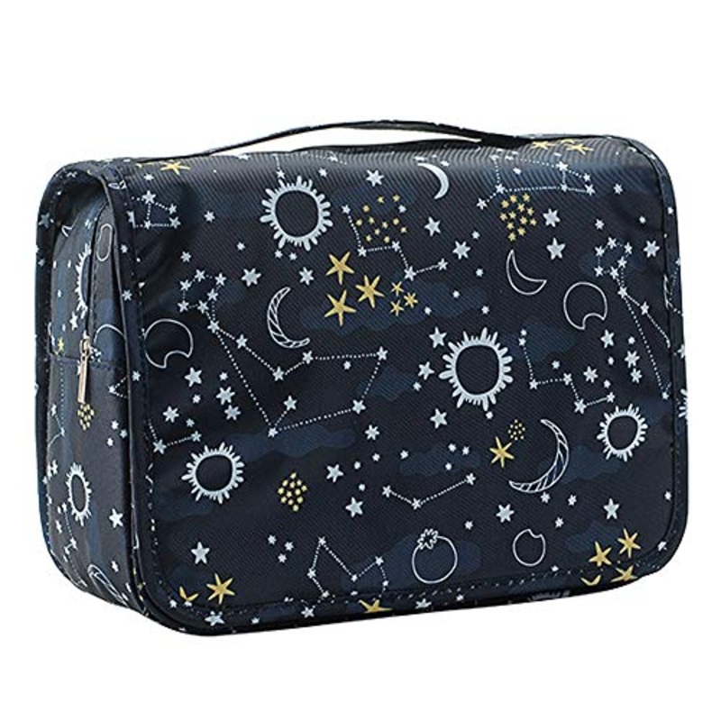 TREESTAR Strisce Floreali Borsa da Viaggio Impermeabile Custodia di Grande capacit Caso Cosmetico Borsa Cosmetica per Il Lavaggio Portatile con Gancio per Uomini Donne Che Viaggiano (Navy)