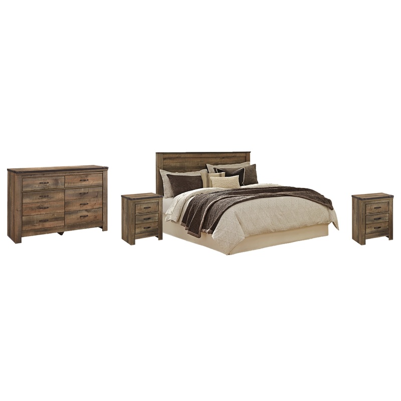 Trinell King/California King Panel Headboard Bed with Mirrored Dresser and 2 Nightstands