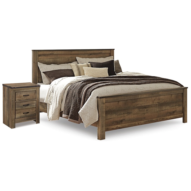 This bedroom set brings home a sense of authenticity. Rustic finish, plank-style details and nailhead trim pay homage to reclaimed barn wood, making for a chic look loaded with charm.