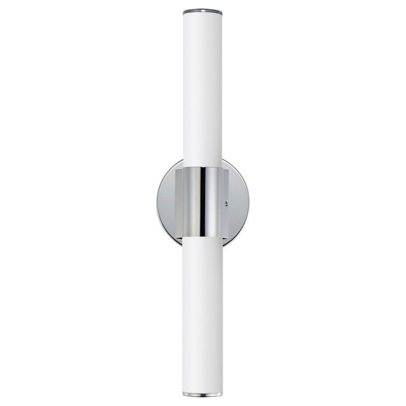 A tube of light extends in both directions in this clean and contemporary LED wall sconce. Available in various lengths and finishes the fixture can either be mounted directly from its frame on a single gang box or with the use of the five inch cover plate