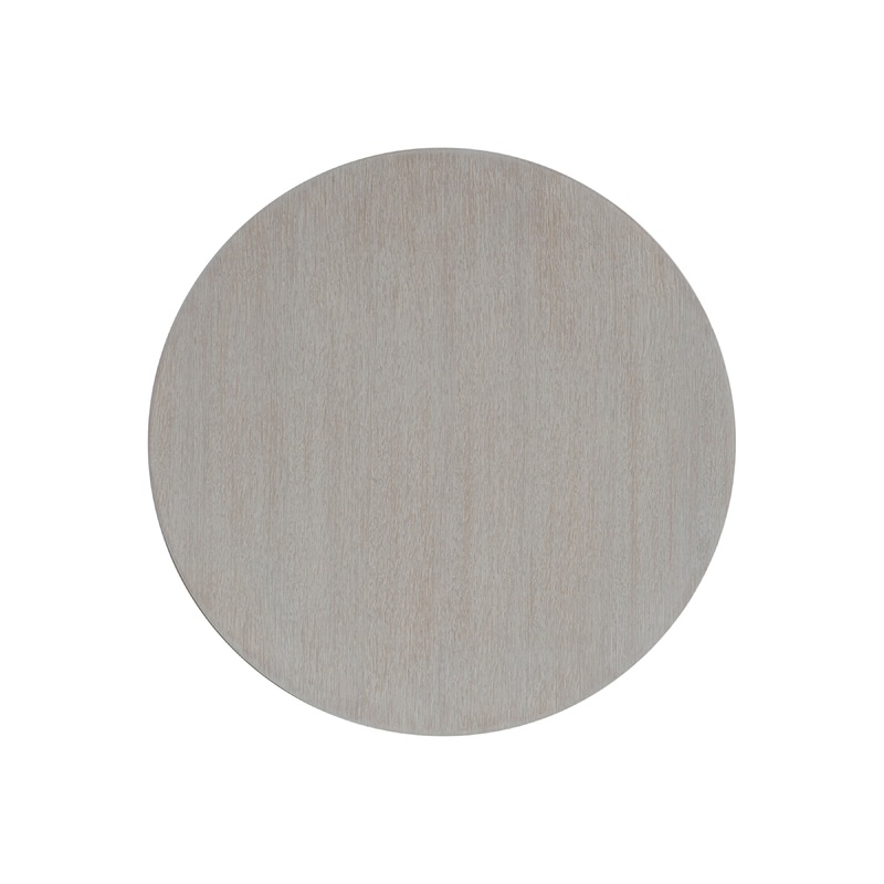 Shape and simple styling offer an uncomplicated form for the Turo side table. A cylindrical leg in Fossil finish supports a round wire-brushed oak top in Bone finish.