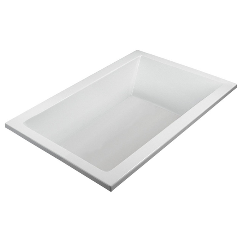 Reliance Rectangular End Drain Undermount Whirlpool White 72" x 42" x 19.75" -Thermoformed high-gloss cross-linked cast acrylic reinforced with a thick layer of fiberglass/resin/titanium backing for added strength and increased insulation -Metal reinforcem