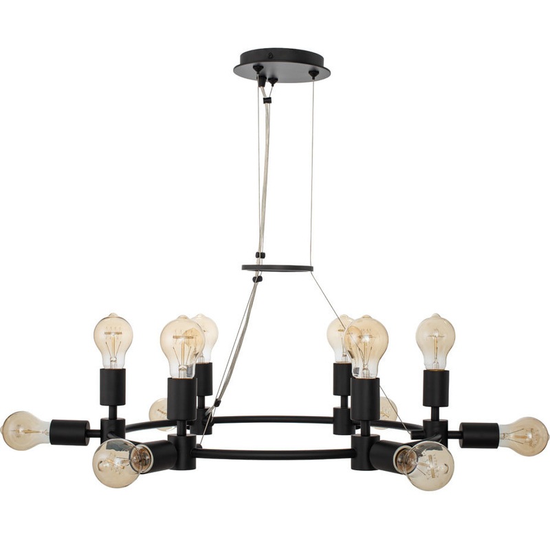The Union Collection is an industrial treatment in a playful arrangement. You can use any shape E26 bulbs or mix different bulb shapes as you like. Your choice of lamping will determine the final chandelier shape. Available in Winter Brass (WB) or Matte Bl
