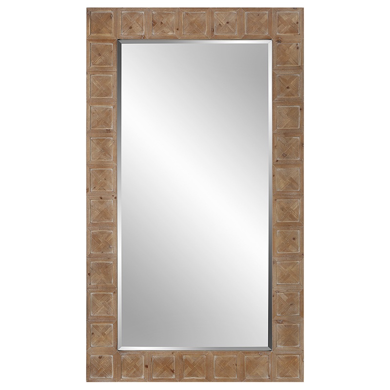 Lending Itself To Rustic Lodge And Farmhouse Styles, This Rectangular Mirror Is Crafted From Solid Fir Wood With Crossed Inlay Details Around The Frame And A Light White Wash That Accentuates The Natural Wood Grain. Mirror Has A 1 1/4″ Bevel And May Be Hung Horizontal Or Vertical. Due To The Nature Of Natural Materials, Each Piece May Have Slight Variations.