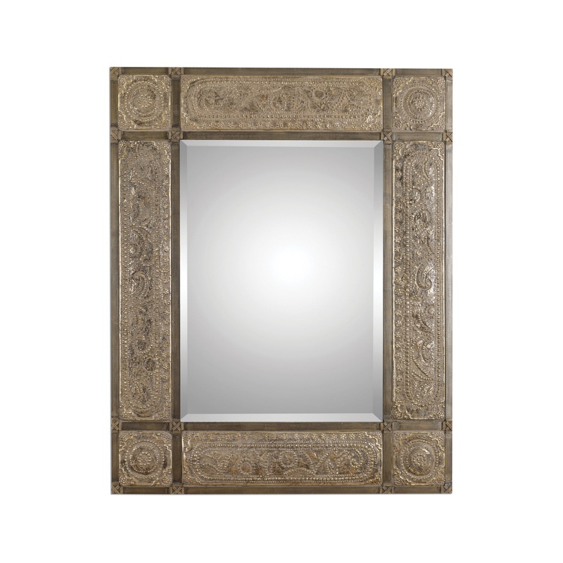 -The Serenity Mirror makes a welcomed statement on your walls and in your halls. Reflect your excellent taste in style with this mirror'sembossed flourish accents and warm champagne leaf finish. If you're looking to add regal charm to your home, this decor