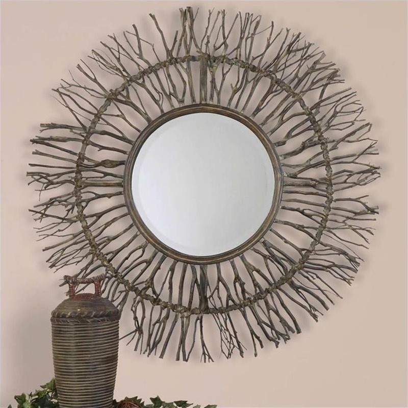 Uttermost Josiah MDF Rattan Woven Birch Branches Sunburst Mirror in Gray – Contemporary – Wall Mirrors – by Furniture East Inc.