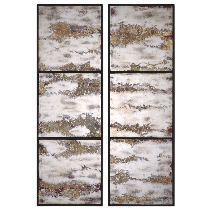 -Each panel features three mirrors with a heavily oxidized, antiqued mirror in deep earth tones. May be hung horizontal or vertical.Bob and belle cooper founded the uttermost company in 1975, and it is still 100% owned by the cooper family. The uttermost mission is simple and timeless: to make great home accessories at reasonable prices. Inspired by award-winning designers, custom finishes, innovative product engineering and advanced packaging reinforcement, uttermost continues to deliver on this mission.