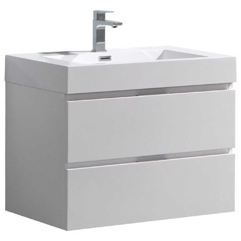 The Fresca Valencia Wall Hung Modern Bathroom Vanity is the ideal starting point for creating an elegant and modern bathroom. The rectangular vanity offers great storage with two soft-closing drawers, just perfect for organizing all of your daily essentials. The drawers feature concealed aluminum handles and the cabinet has a stylish Glossy White finish. The white acrylic-resin countertop/sink has smooth lines and a thick profile. It is equipped with an overflow and single hole faucet mount. This lovely vanity is available in multiple sizes and makes a stylish statement in any home.