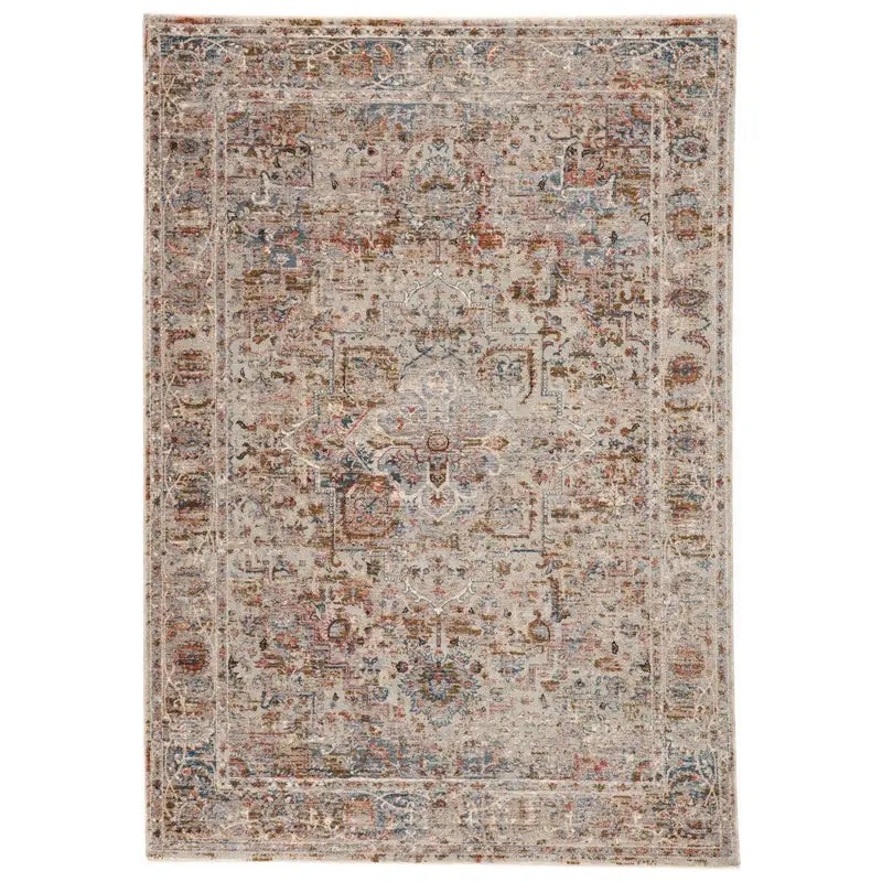 The Valentia Pierce rug blends timeless charm with bold, modern appeal. Featuring an erased center medallion in golden tan, cream, and gray with subtle terracotta accents, this rug adds warmth and elegance to any room. Power-loomed from durable polyester and soft viscose, it offers a plush high-low pile for added texture and dimension.
