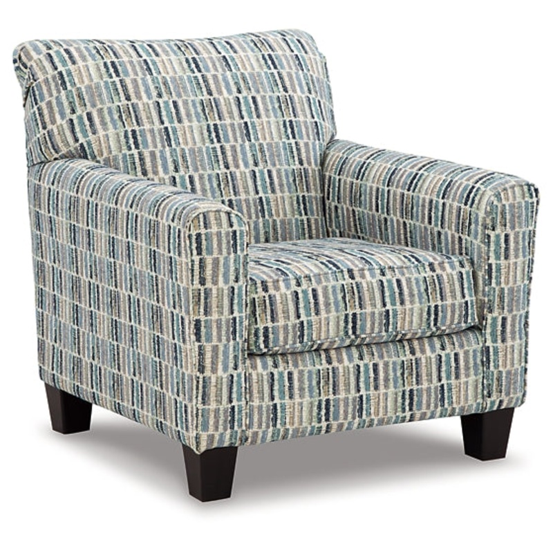 This accent chair has the corner on casual contemporary style and everyday comfort. Chic and subtly innovative, its colorful geometric upholstery is a forward-thinking take on cool hues. This simple, streamlined design is sure to appeal to your relaxed approach to modern flair.