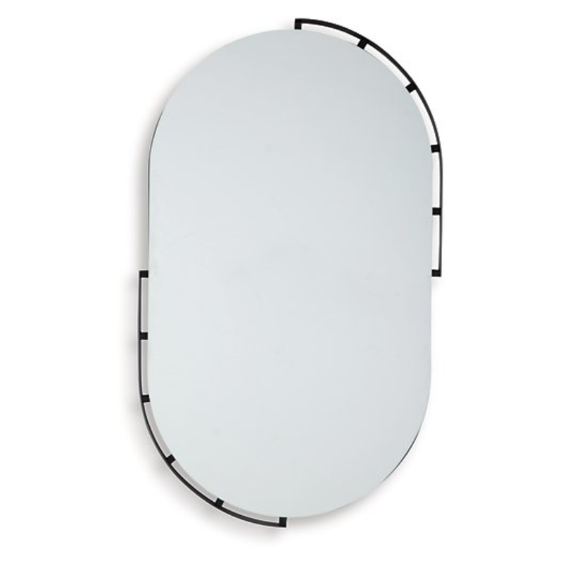 Update your home or office with contemporary appeal. This accent mirror is subtly embellished, with black metal accents bordering its striking oval shape. Make a statement, curate a quirky collection, or use it to make your space appear largerthe design id