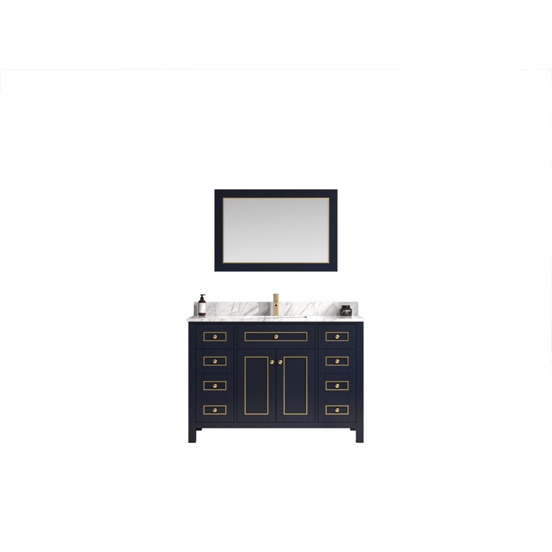 -Dimensions: L:23 x W:48 x H:33 -Finish: Blue -Counter Top: 18mm White Carrara Marble Top -Sink: White Ceramic Sink -Faucet: Not Included -Faucet hole : 4" Pre-drilled 3 holes -Matching Mirror: Sell Seperately ( WLF2436-B-M ) -Mirror Dimensions: L:1 x W:24