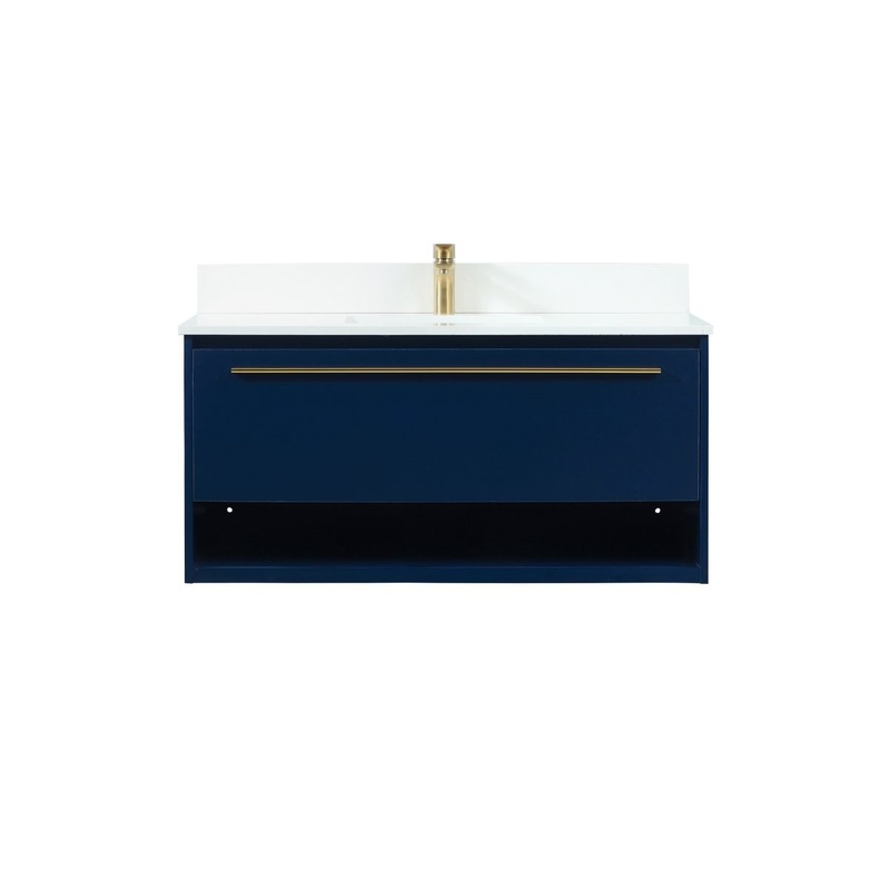 Save space and make your bathroom appear bigger with this floating vanity. Its minimal design will have you in awe, while its clean lines will leave your room feeling fresh and uncluttered. The single u-drawer pulls out for storage while the open space below allows you to place extra towels or various other essentials. The ivory white quartz counter top with porcelain sink adds refined luxe while the aluminum barpull style handle adorn the vanity face. Comes with a matching backsplash to protect your walls.