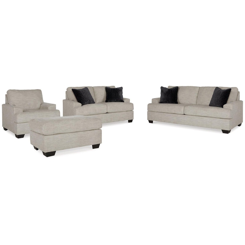 Laid-back luxury meets neutral practicality in this seating package. Taking its cues from contemporary design, the clean-lined set is outfitted with angular arms for a layer of geometric expression. Softly upholstered, sizable cushions keep you comfortable. With these pieces, winning style and superb functionality go hand in hand.