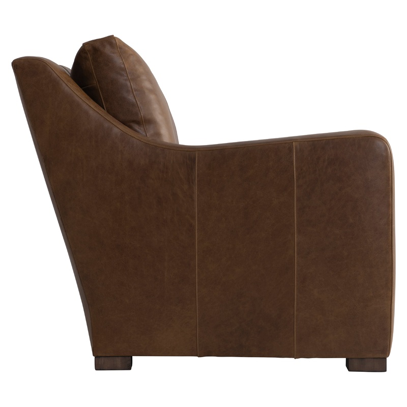 Clean lines and graceful curves blend modern and traditional shaping for the Ventura leather left arm loveseat. The arm gently swoops from a tall back and then takes a straight line to the floor. Two deep seat cushions and box-edge bordered back pillows pr