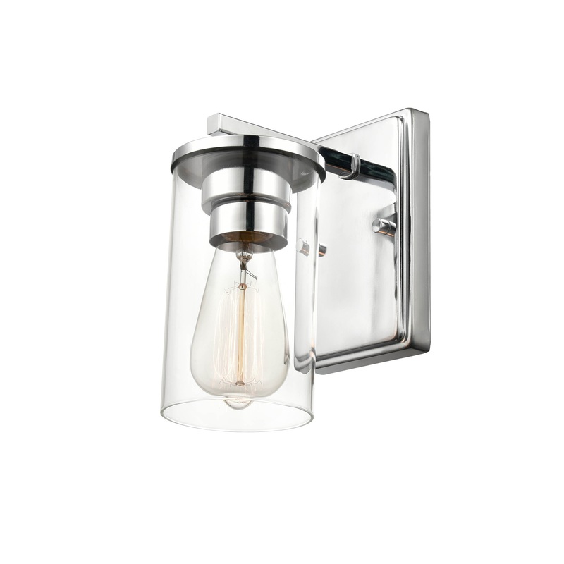 -Chrome or matte black finish, the sleek lines of the fixtures are perfectly complemented bythe clear glass, cylindrical shades. This 1 Light fixture requires A Lamps bulbs in 60W. This 4.33 in. Sconce does not include bulbs. UL Listed and Hardwired