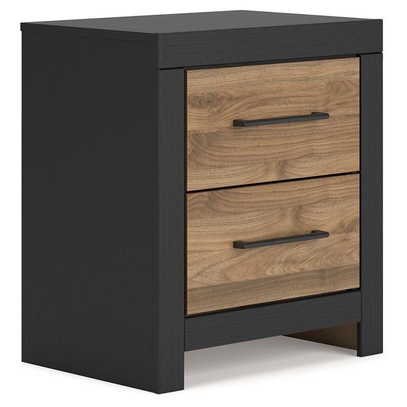 Relaxed yet striking, this nightstand brings casual beauty and function to your dream destination. A delightful two-tone treatment blends a fresh replicated walnut grain with a matte black finish, while sleek handles in an antiqued gunmetal finish lend a contemporary touch. You’re sure to love its spacious drawers that glide open and offer plenty of storage for nighttime essentials. USB charging ports conveniently keep your devices powered up.