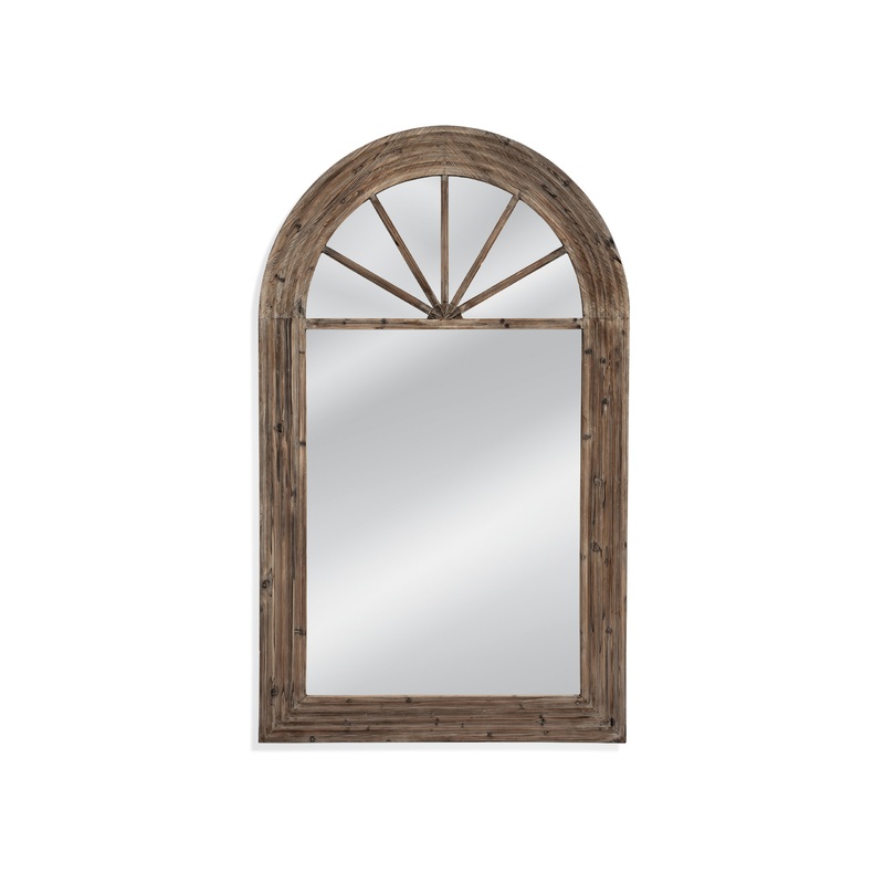 The View Floor Mirror offers a charming window-like design with its arched shape, adding rustic elegance to any room. Crafted from solid wood and finished in a weathered gray-brown hue, this mirror exudes warmth and character. Perfect for creating a cozy atmosphere, it effortlessly enhances the aesthetic of your living space while providing a functional accent piece.