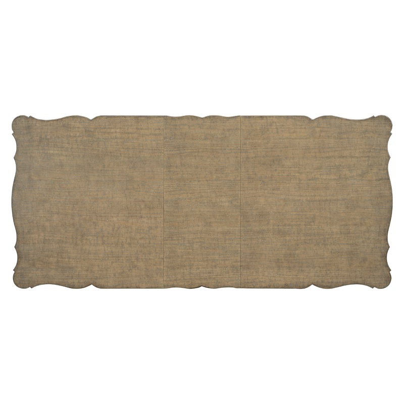 Criollo finish. Shaped top. Two 20″ leaves. Cast resin pedestal with wood floor base. Adjustable glides.
